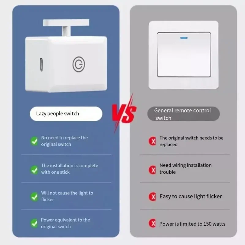 1.Revolutionary Lighting Control: For an effortless lighting upgrade, use our remote button pusher to control your lights with ease.Quickly turn your lights on or off from anywhere in the room with a simple click; convenient to install right beside your existing light On Off.2.Simplistic Illumination: With our Remote Button Pusher, you can easily control your light to manually operate, without the need to get up.No more hassle of turning lights on and off from anywhere in the room.Enjoy a seamlessly lit space.3.No More Hassle: Enjoy a stress-free setup with our Remote Button Pusher; no need to deal with wires and cables.It features a simple installation process that requires no wiring.A great solution for easy and seamless automation.4.Enhanced Security: Simplify lighting up your surroundings by a mere button press with our Remote Button Pusher.Feel secure with easy-access lighting, ideal for seniors and children with mobility issues who fear the dark.